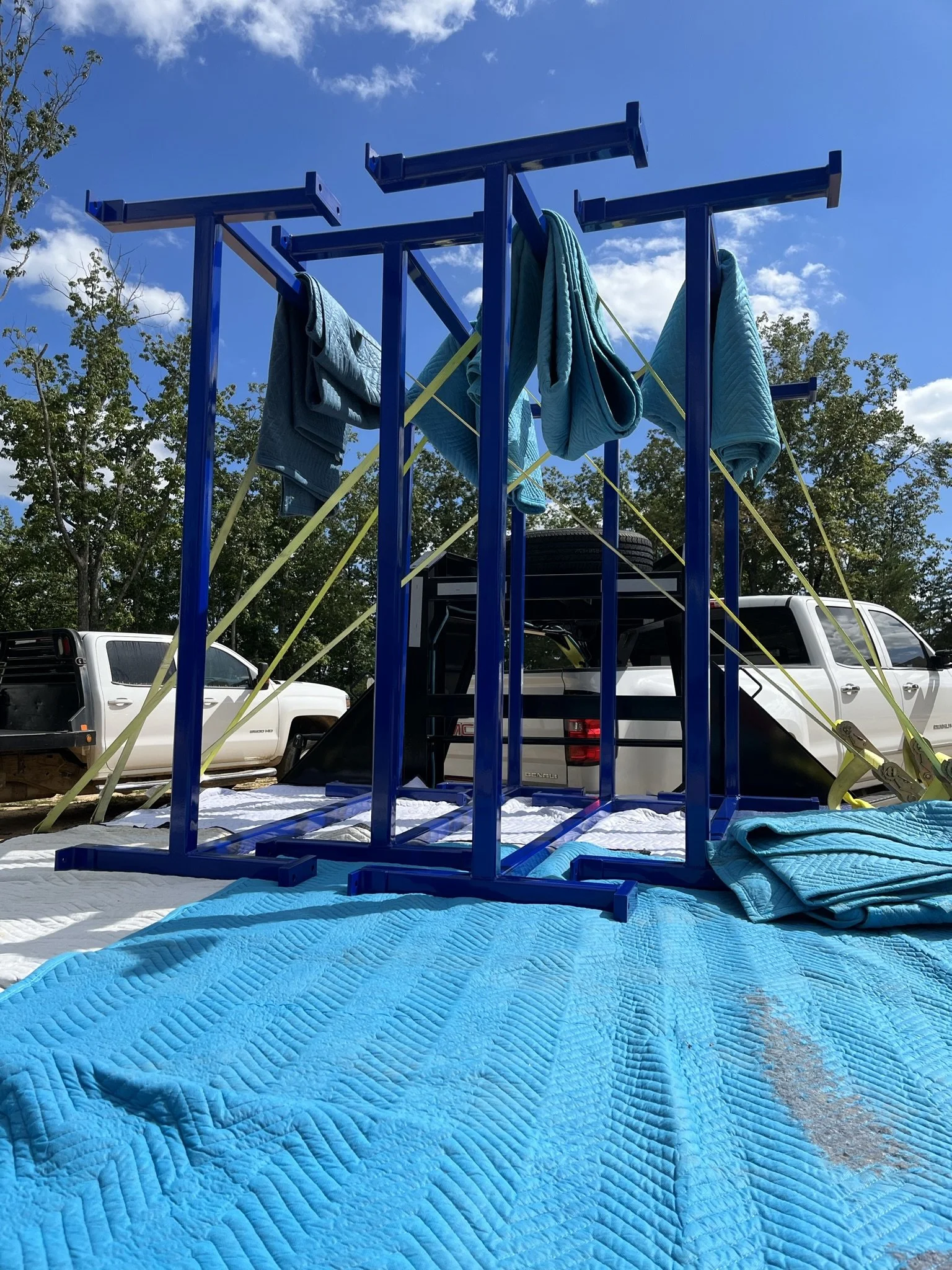 All surface areas sandblasted down to clean, raw steel for maximum surface adhesion.